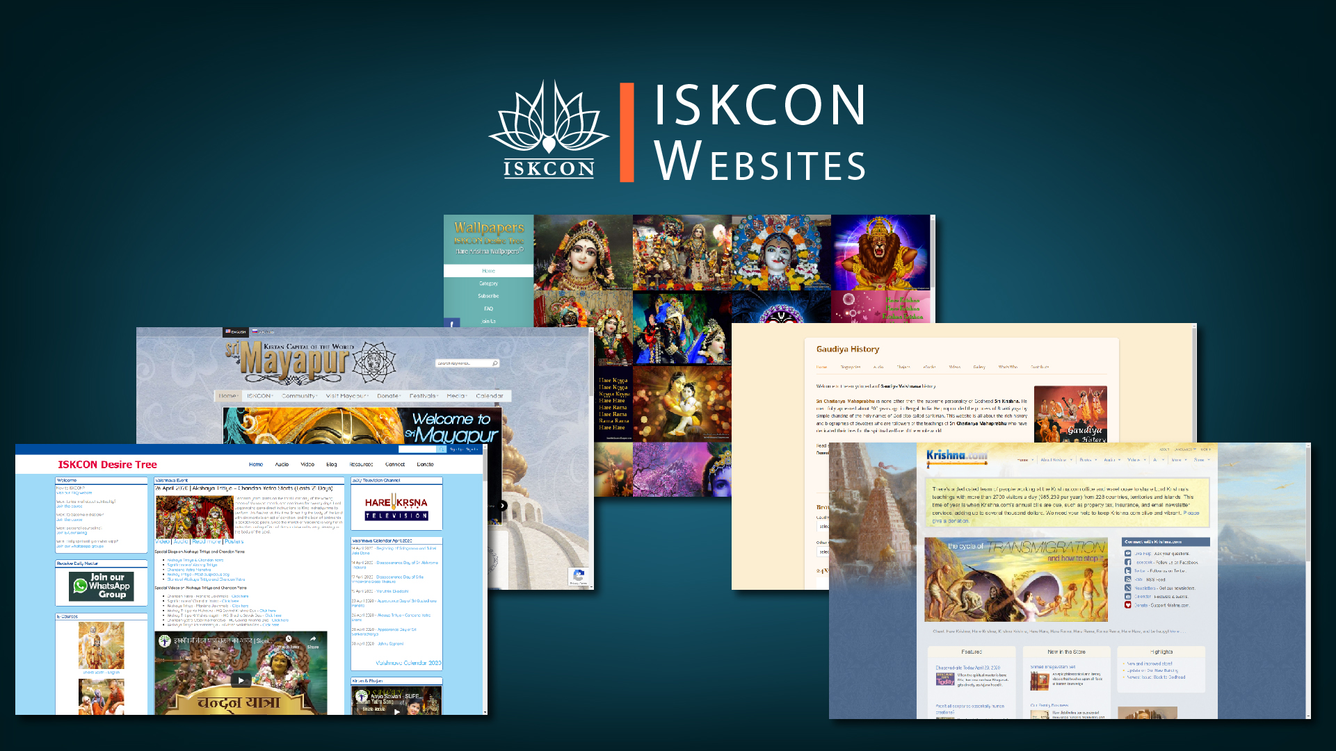 Ever tried searching for a simple phrase such as "ISKCON Audio" on any search engine such as google? You will find more than 1.2 million websites furnished by the search engine. Similarly, you will find millions and millions of websites for - quotes by different saints in ISKCON, ISKCON farming communities, Books, Education, Healthcare, Restaurants, Yatras, videos, lectures, kirtans etc. How does one figure out which ones are relevant for them or which are even authentic to begin with? "ISKCON Websites" is an initiative to serve the seeker gain access to authentic and relevant, filtered information based on their area of interest, handpicked from the search engine's ocean of links.